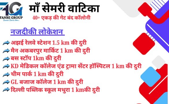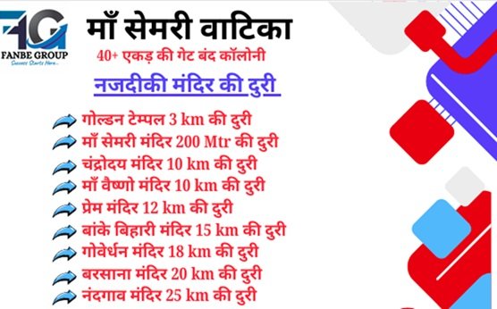 Goverdhan Mandir: 15 Min Chandroday Mandir : 10 Min Radha Krishna Mandir : 5 Min Ajhai Railway : 1 Min NH-2 Highway , Theme Park, Main market : 2 Min Barsana Radha Rani Mandir :10 Min |